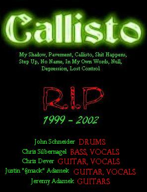 Callisto was a Chicago/Cook County based band. We have our own style of metal, and we play our own written work. Email Chris if you have any questions to ask about the band or anything else on your mind. We want you all to be informed. On one last note, we want to thank anyone that has ever supported us, it's been fun.